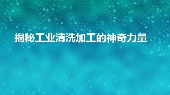 揭秘工业清洗加工的神奇力量?你绝对想不到的秘密!