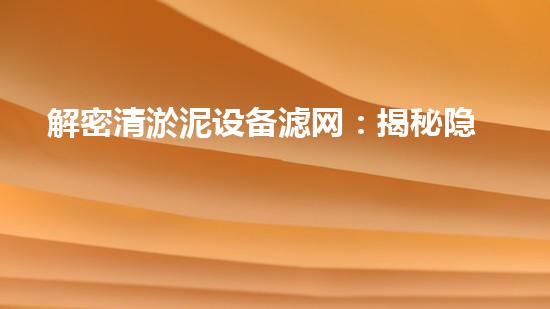 解密清淤泥设备滤网:揭秘隐藏的污泥奇迹!