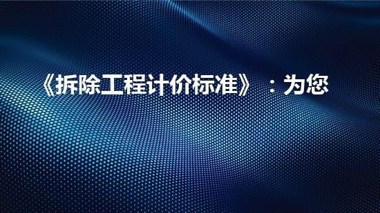 《拆除工程计价标准》:为您的拆除工程提供权威指导