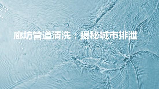 廊坊管道清洗:揭秘城市排泄系统中的神秘世界!
