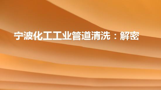 娄底化工厂管道清洗:神秘的产业内部大扫除!