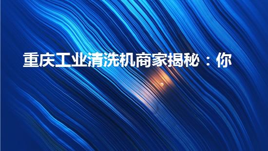 重庆工业清洗机商家揭秘:你不知道的行业内幕和未来趋势!