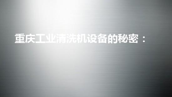 重庆工业清洗机设备的秘密:你不知道的清洁革命!