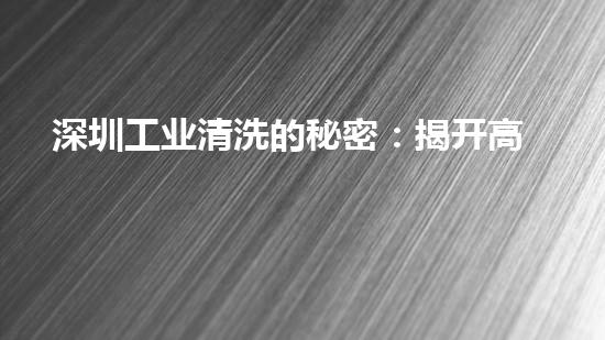 深圳工业清洗的秘密:揭开高效清洁的神奇力量!