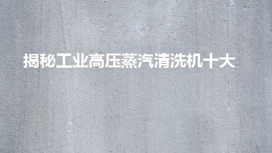揭秘工业高压蒸汽清洗机十大名牌排名榜!哪些品牌才是你的最佳选择?