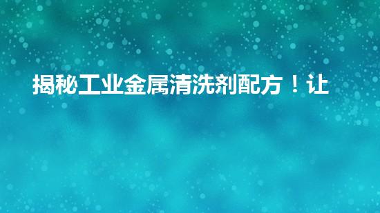 揭秘工业金属清洗剂配方!让你的设备焕然一新?