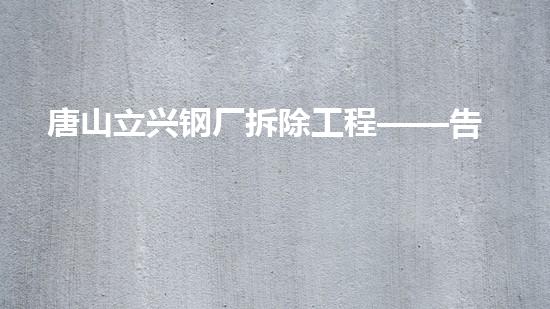 唐山立兴钢厂拆除工程——告别旧时代,迎接美好明天