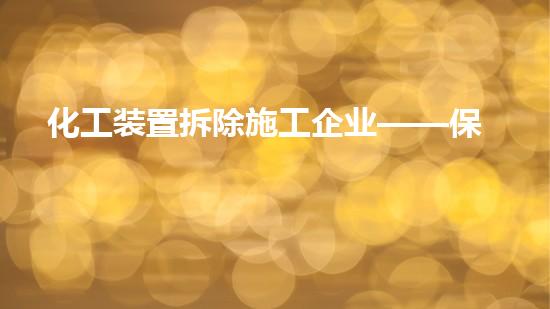 化工装置拆除施工企业——保障环境安全,实现可持续发展
