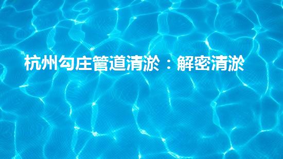 杭州勾庄管道清淤:解密清淤工程的奥秘
