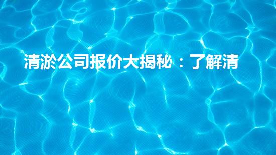 清淤公司报价大揭秘:了解清淤服务价格的关键因素
