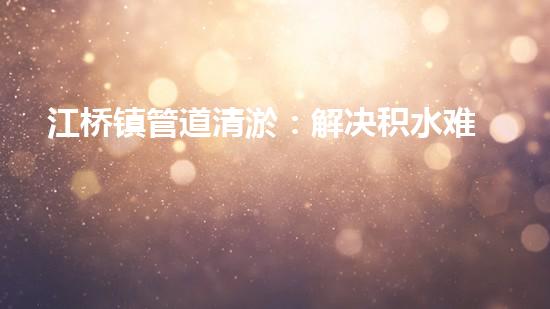 江桥镇管道清淤:解决积水难题,保障市民安全