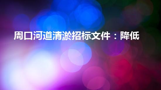 周口河道清淤招标文件:降低运维成本,实现河道净化