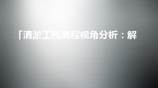 「清淤工程高程视角分析:解决城市污水排放难题」