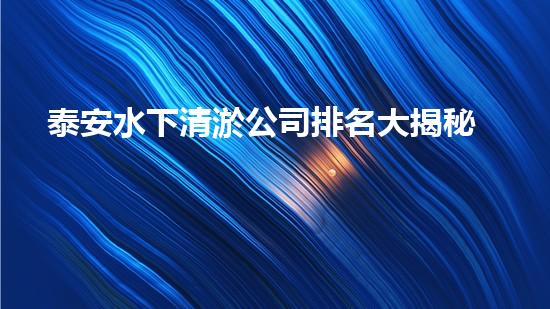 泰安水下清淤公司排名大揭秘,找到最优质的清淤服务!