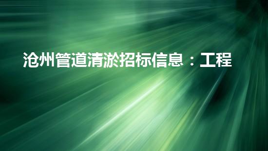 沧州管道清淤招标信息:工程详述、规格清晰!