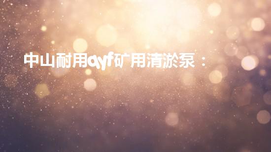 中山耐用qyf矿用清淤泵:高效清淤神器