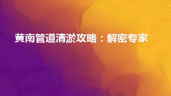 黄南管道清淤攻略:解密专家技巧,打造流畅畅通!
