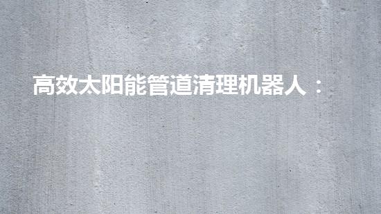 高效太阳能管道清理机器人:解放双手,迅速排污,确保太阳能系统运行畅通!