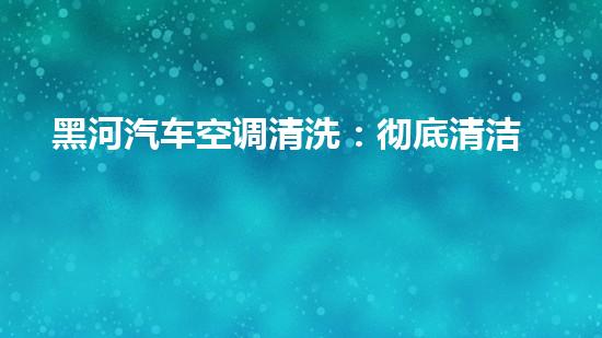黑河汽车空调清洗:彻底清洁车内气流,呼吸更加安心!