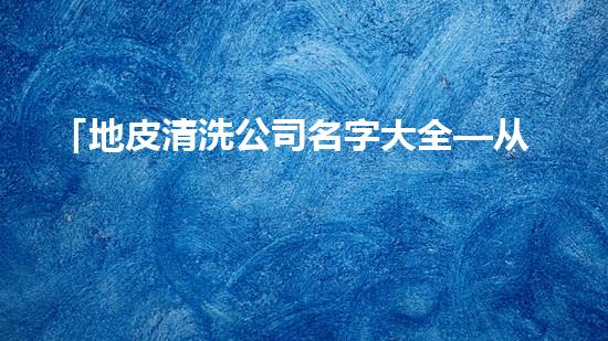 「地皮清洗公司名字大全—从专业清洗到环保经验」