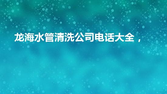 龙海水管清洗公司电话大全,24小时服务,专业解决排水问题