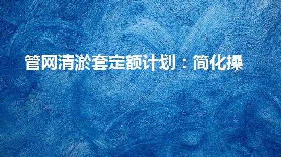 管网清淤套定额计划:简化操作、提高效率!