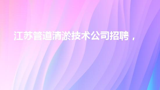 江苏管道清淤技术公司招聘,海量机会等你来!