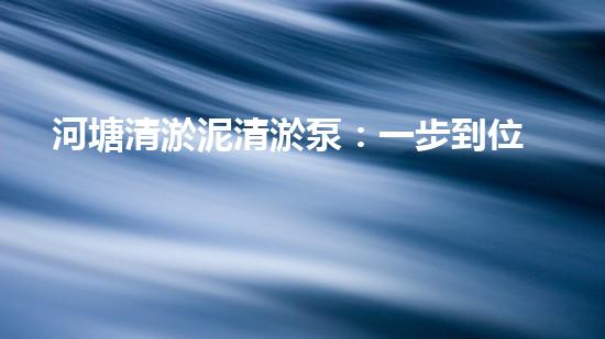 河塘清淤泥清淤泵:一步到位,让清淤事半功倍!