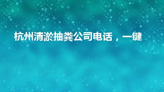 杭州清淤抽粪公司电话,一键预约专业清淤服务