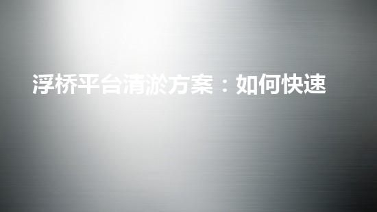 浮桥平台清淤方案:如何快速有效地解决淤积问题?
