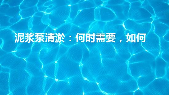 泥浆泵清淤:何时需要,如何选择泥浆泵以及清淤的必要性