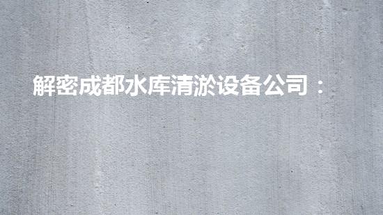 解密成都水库清淤设备公司:创新技术打破常规,为何它能让水库焕发新生?