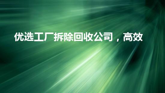 优选工厂拆除回收公司,高效化解旧厂遗留难题