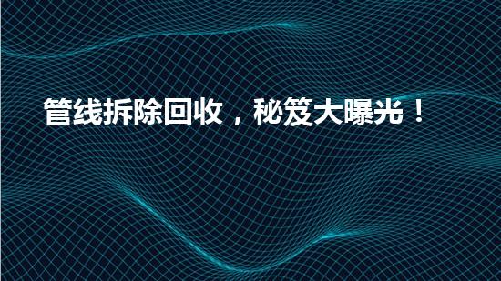 管线拆除回收,秘笈大曝光!